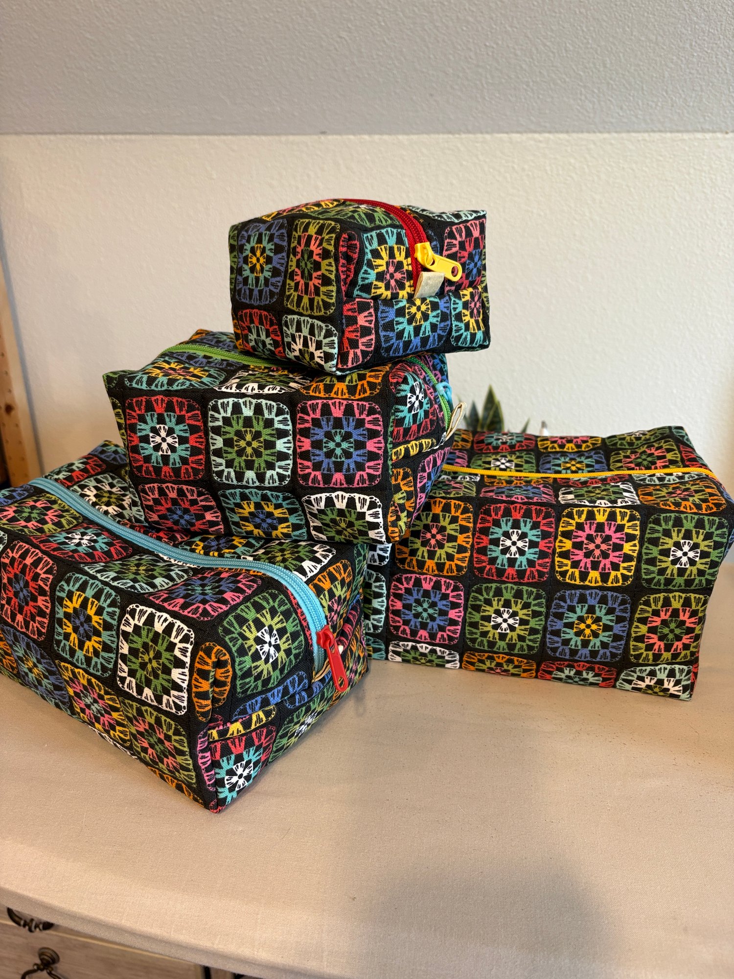This versatile Boxy Bag Bundle includes sewing patterns for four different sizes of the same classic boxy bag—perfect for organizing everything from makeup and toiletries to craft supplies and travel essentials.