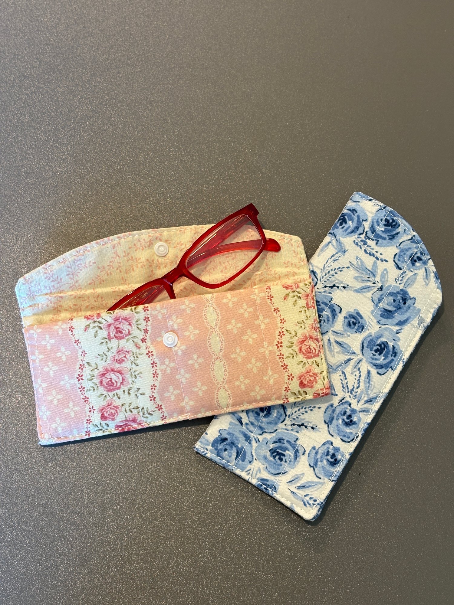 This beginner-friendly sewing pattern includes two easy ways to sew a lined, quilted glasses case—a snap-closure case for secure storage and a simple slip-in sleeve for quick everyday use.