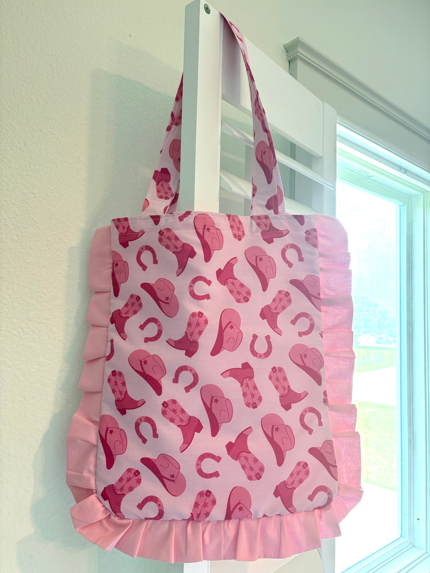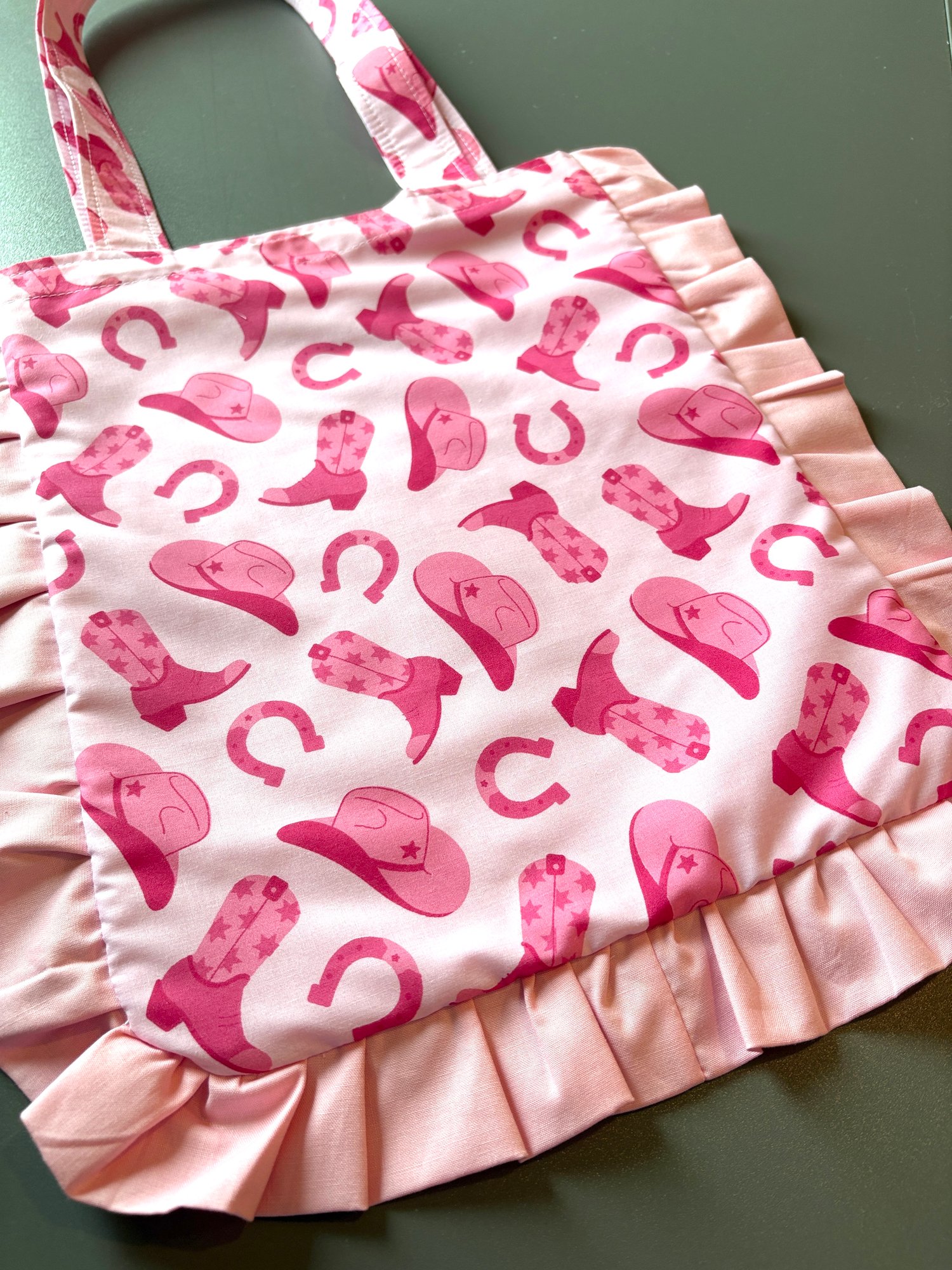 Whether you're headed to the farmers market, wrangling your latest craft supplies, or just want to add a little yeehaw to your everyday errands, the Ruffle Rodeo Tote will carry it all in style.