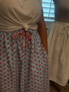 Featuring deep side pockets (yes, even the pockets are finished with French seams!), a soft and stretchy double elastic waistband, and a sweet decorative bow in front, this skirt is as functional as it is charming. The clean interior construction—thanks to French seams throughout—means no raw edges, making it as lovely on the inside as it is on the outside.
